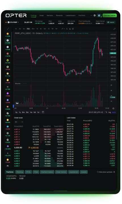 Opter runs on secure, audited smart contracts and public blockchains, giving you full control and transparency. Its non-custodial design, deep liquidity, and advanced tools deliver a safe and efficient trading experience.